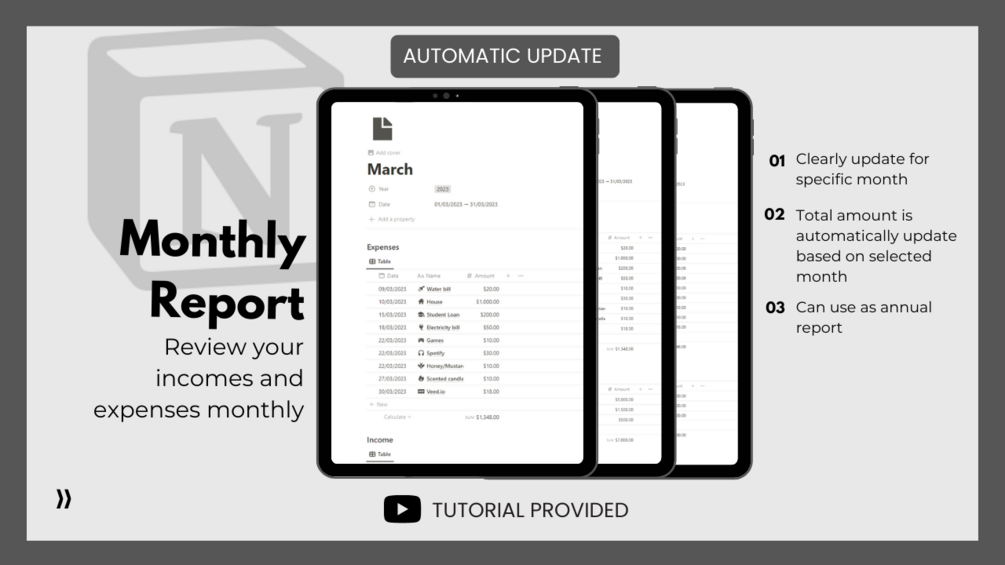 Get your finances in order with this Finance Tracker with minimalist style for Notion! Know exactly where your money goes and maintain control of your finances. Track your financial progress and start saving for your next wish list ! Set a Monthly & Annual Budget for each income & expense category!