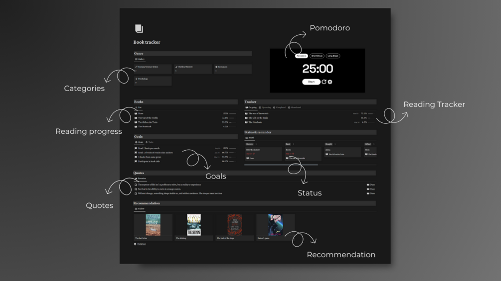 - Helps with book recommendations: By tracking the books you have read and your personal notes and ratings, a book tracker can help you make better book recommendations to others.