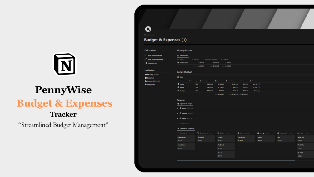 Notion PennyWise: Budget & Expenses tracker with 50/30/20 rule