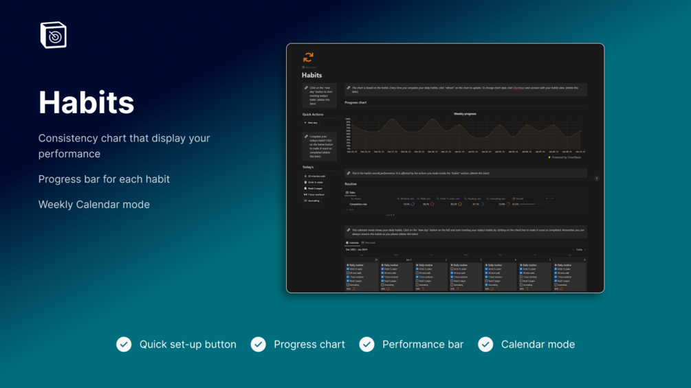 Habit Tracker β Forge new habits and break free from old patterns effortlessly. The interactive habit tracker lets you monitor your daily, weekly, and monthly progress, encouraging you to stay accountable and celebrate your achievements along the way.