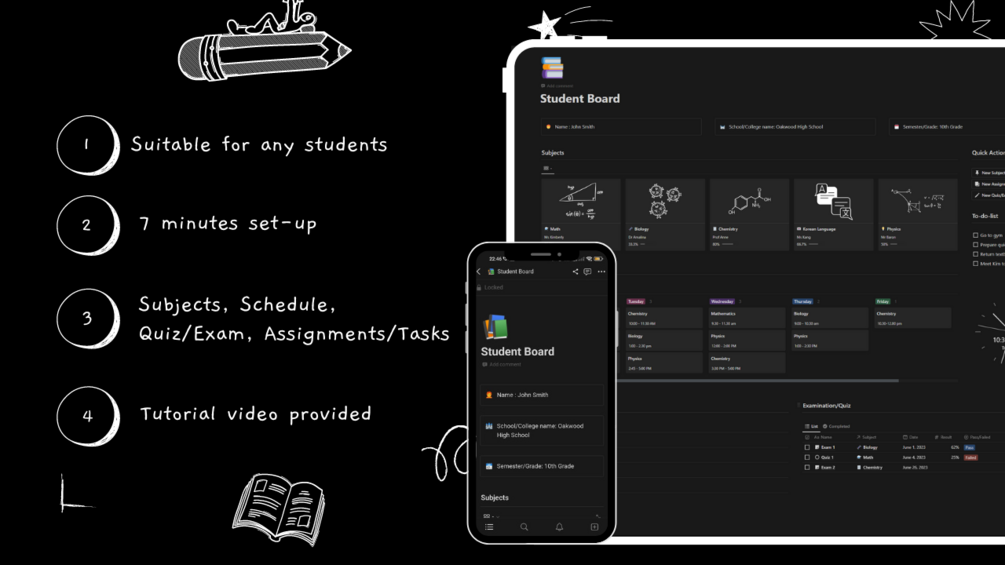 - Productivity Boost: By breaking down larger tasks into smaller, manageable steps, a student planner helps you tackle them more efficiently. It helps you stay organized, avoid procrastination, and maintain a consistent workflow, resulting in increased productivity.